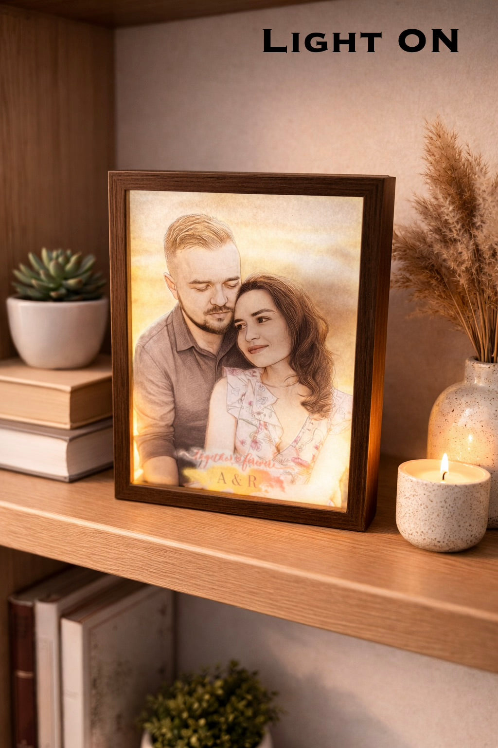 Turn memories into magic with our Magic LED Light Photo Frame, a unique personalized photo frame that transforms before your eyes. When the light is OFF, your image appears as a beautiful pencil sketch. Turn the LED light ON, and the photo magically transitions into a vibrant, full-color image—a stunning surprise effect your loved ones will never forget.