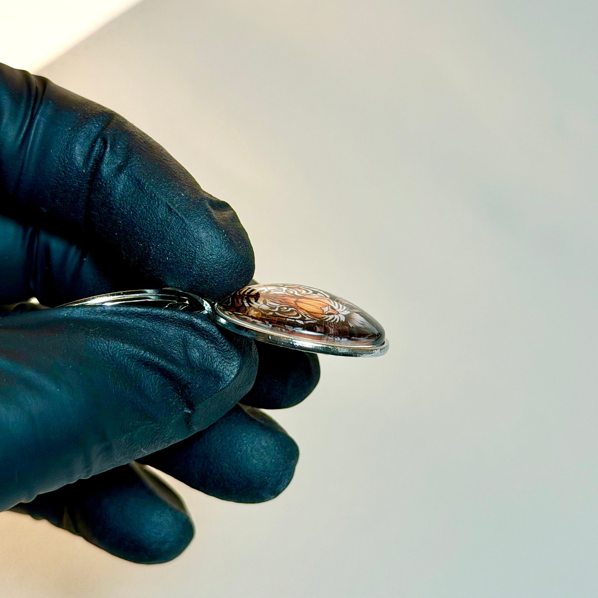 Designed with a high-detail tiger artwork sealed under a glossy glass “time gem” dome, this keychain gives a premium, luxury finish while protecting the design from scratches and fading.